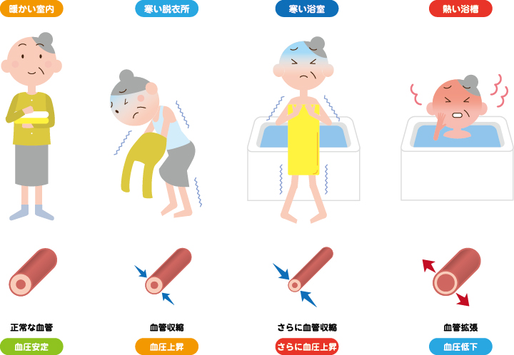 この急激な温度変化によって血圧が大きく変動し、体に負担がかかることを「ヒートショック」と呼びます。