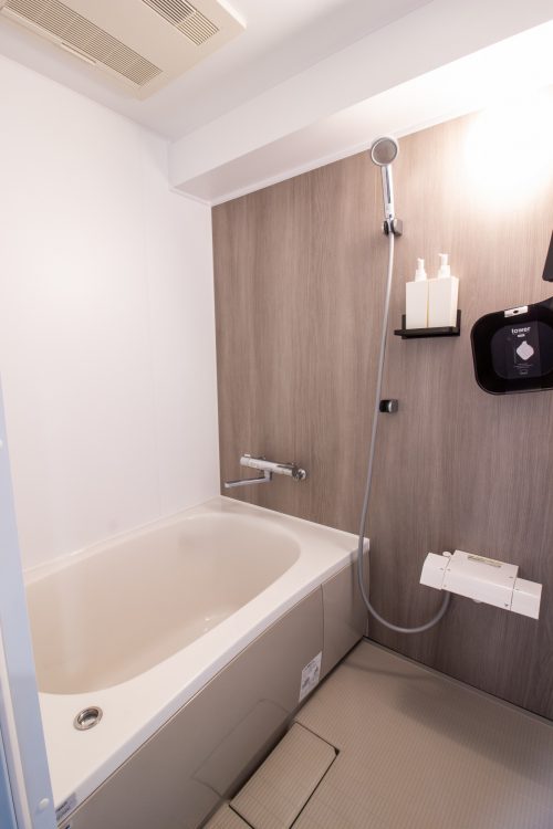 - 断熱性の高い最新のユニットバスへ入れ替えました。 アクセントに落ち着いた木目調パネルを採用し、視覚的にも温かみのある空間を演出。浴槽もゆったりとした形状になり、1日の疲れを癒やすリラックスタイムを楽しめます。浴室乾燥機も完備し、機能面も充実させました。